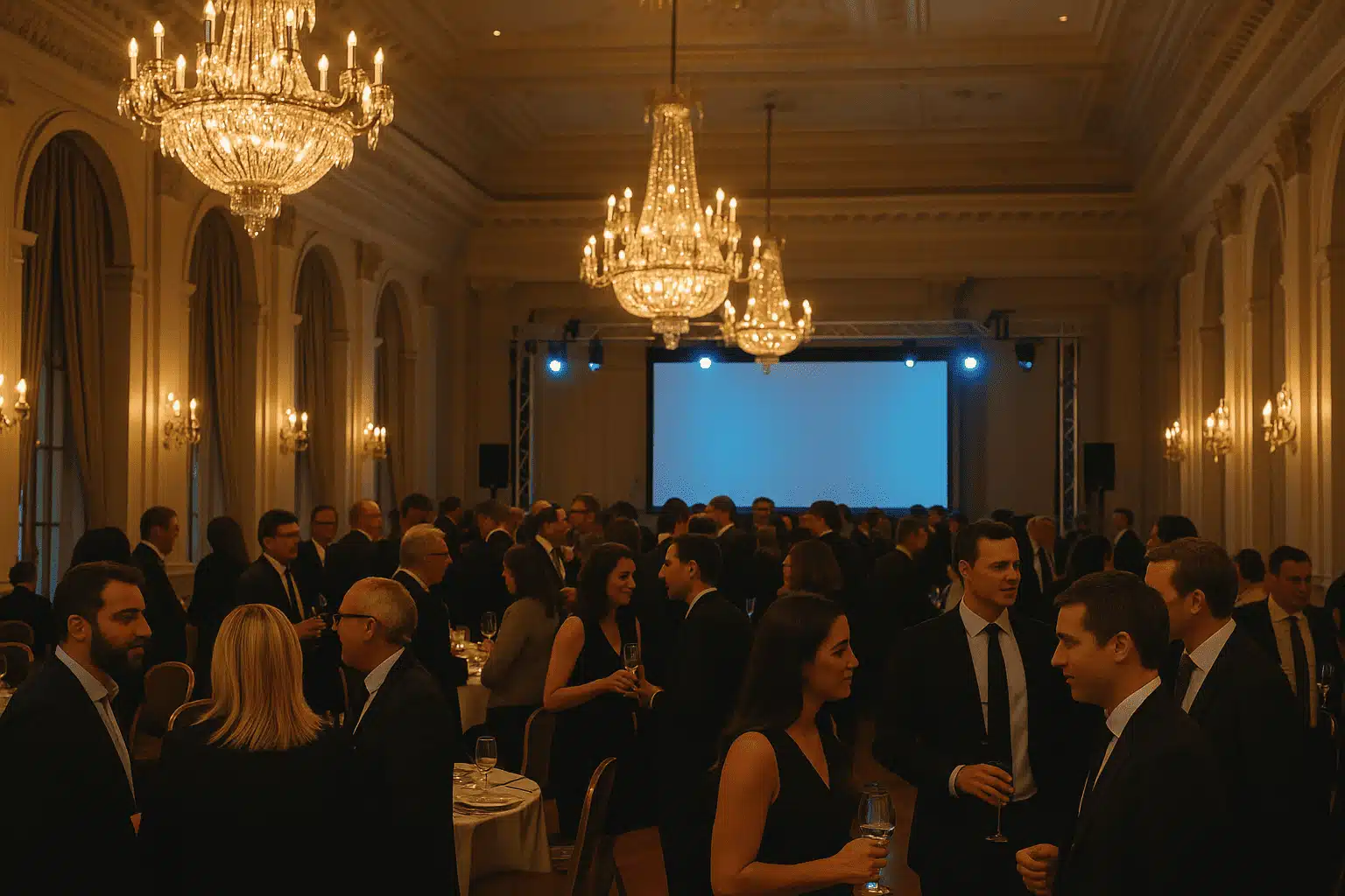 Soirée d’entreprise élégante avec DJ et mise en lumière dans un lieu prestigieux